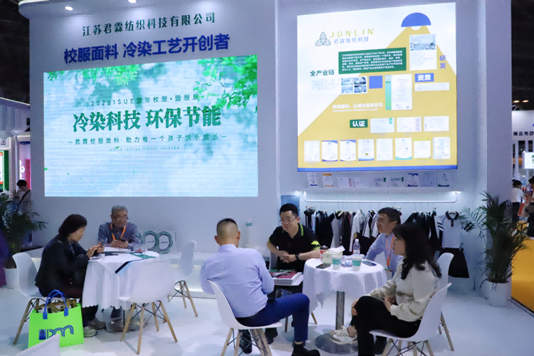 Cold-dyeing is not just a technological innovation—it's a sustainable upgrade path for the school uniform industry. At the exhibition, Junlin’s theme“Cold-Dyeing Tech: More Energy-Saving, More Health-Conscious” drew great attention from visitors. The samples were widely praised for their rich color expression and smooth, refined surface.