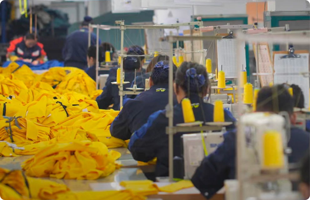 There are 1,100 sewing workers with an annual garment production capacity of 4.8 million pieces.