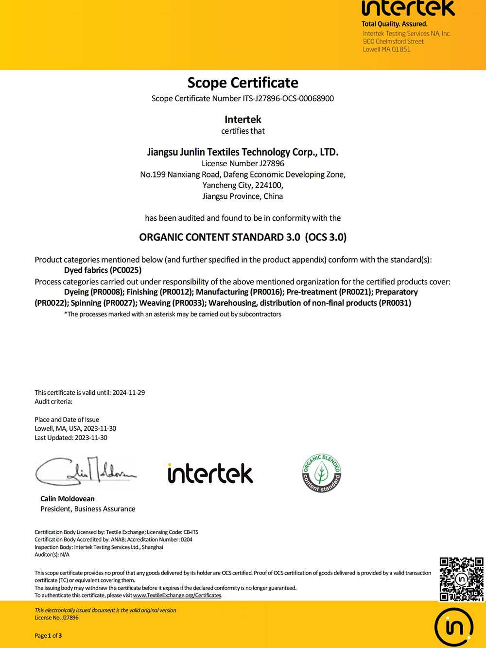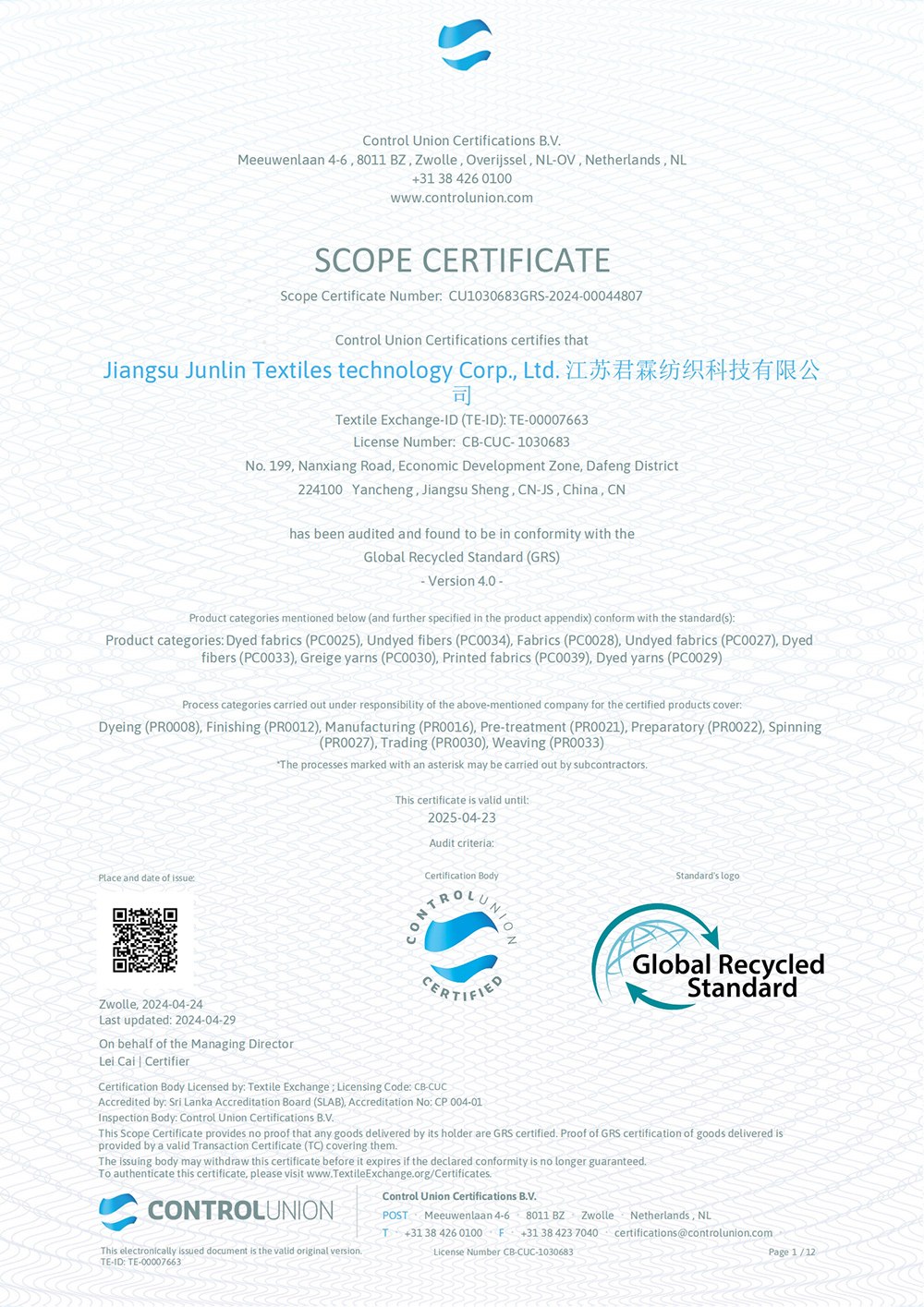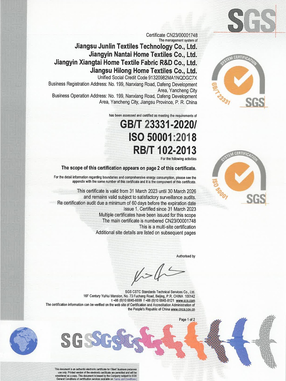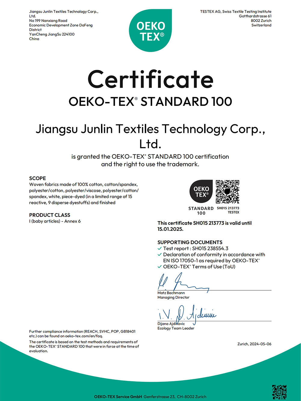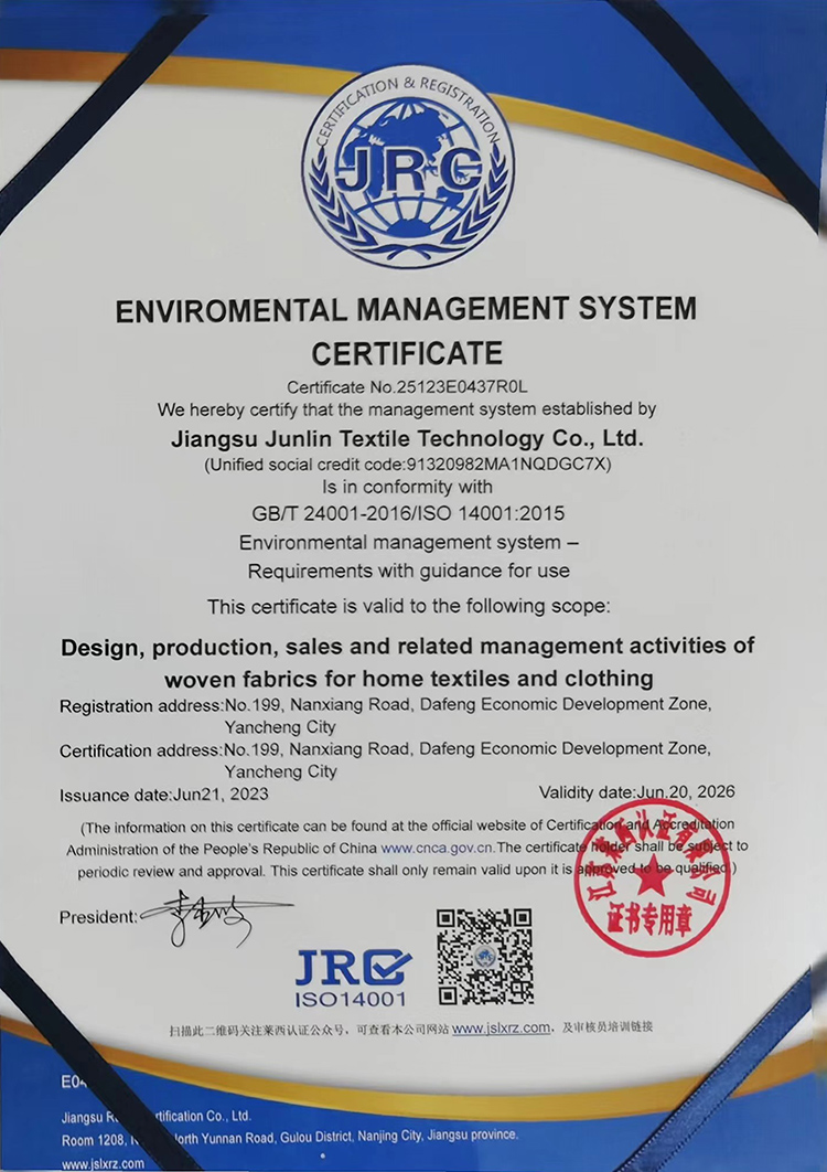 As a multi-category textile manufacturer spanning domestic and international markets, our Group has established a dual certification system covering both domestic and global standards. Domestically, we strictly adhere to the three management system standards: ISO 9001 Quality Management System, ISO 14001 Environmental Management System, and ISO 45001 Occupational Health and Safety Management System, ensuring products comply with GB/T national standards. Internationally, we have obtained certifications including GRS (Global Recycled Standard) for recycled polyester, SC-OCS (Organic Content Standard) for organic cotton, OEKO-TEX® STANDARD 100, HIGG INDEX (Social Responsibility), HIGG FEM (Environmental Management), and C-TPAT. These certifications demonstrate our commitment to providing trustworthy products and services, highlighting strengths in environmental protection, safety, sustainable development, and green supply chain management.