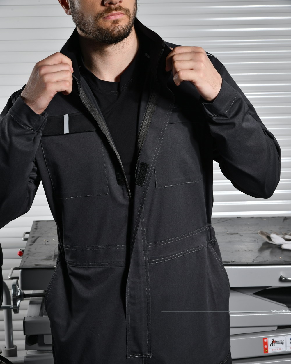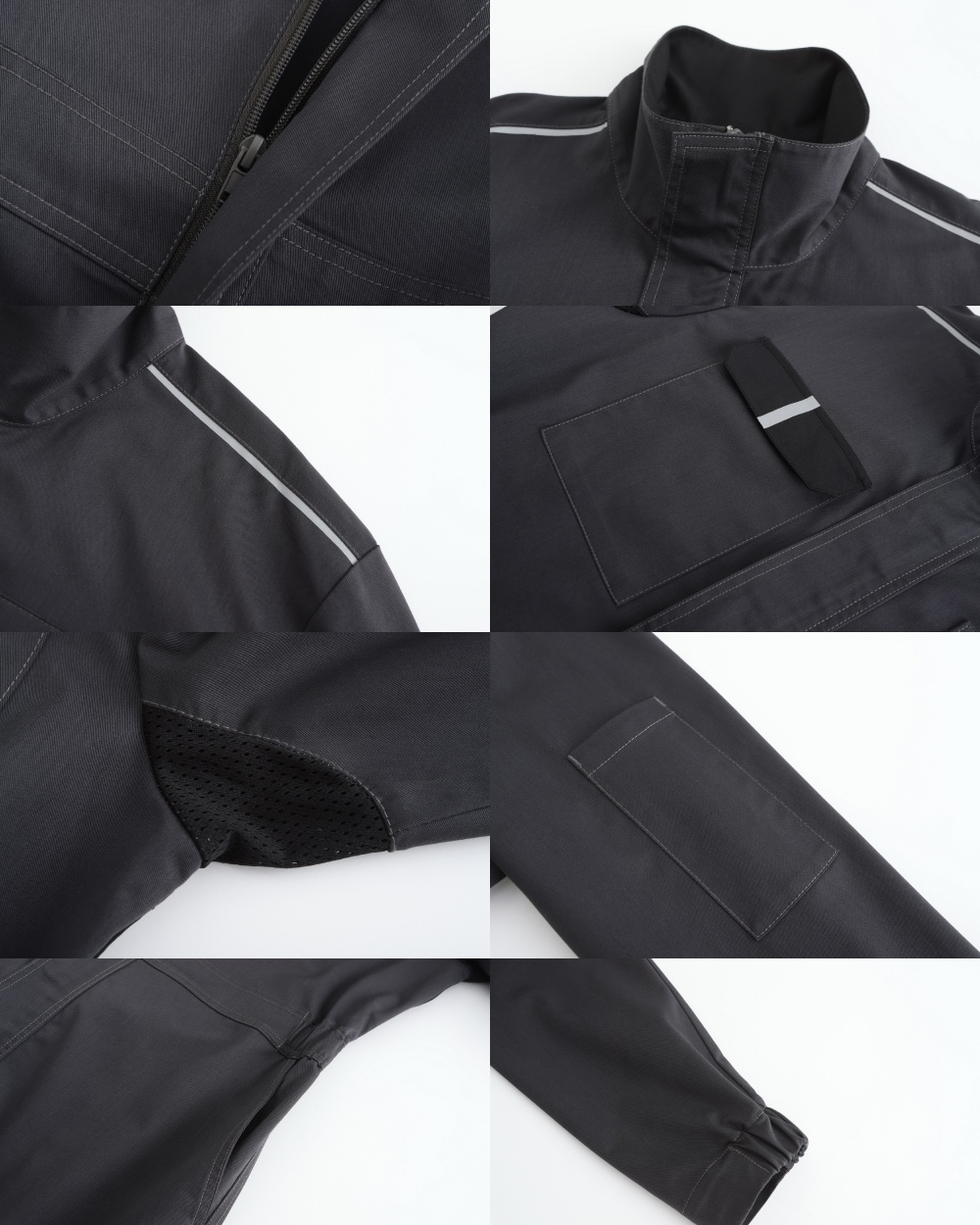 2. 3M reflective strips on shoulders, chest, back neck, and knees for safety; Ribbed cuffs and black elastic waistband offer easy adjustment and a secure fit; Large flap chest pocket and sleeve pocket designed to meet work demands.