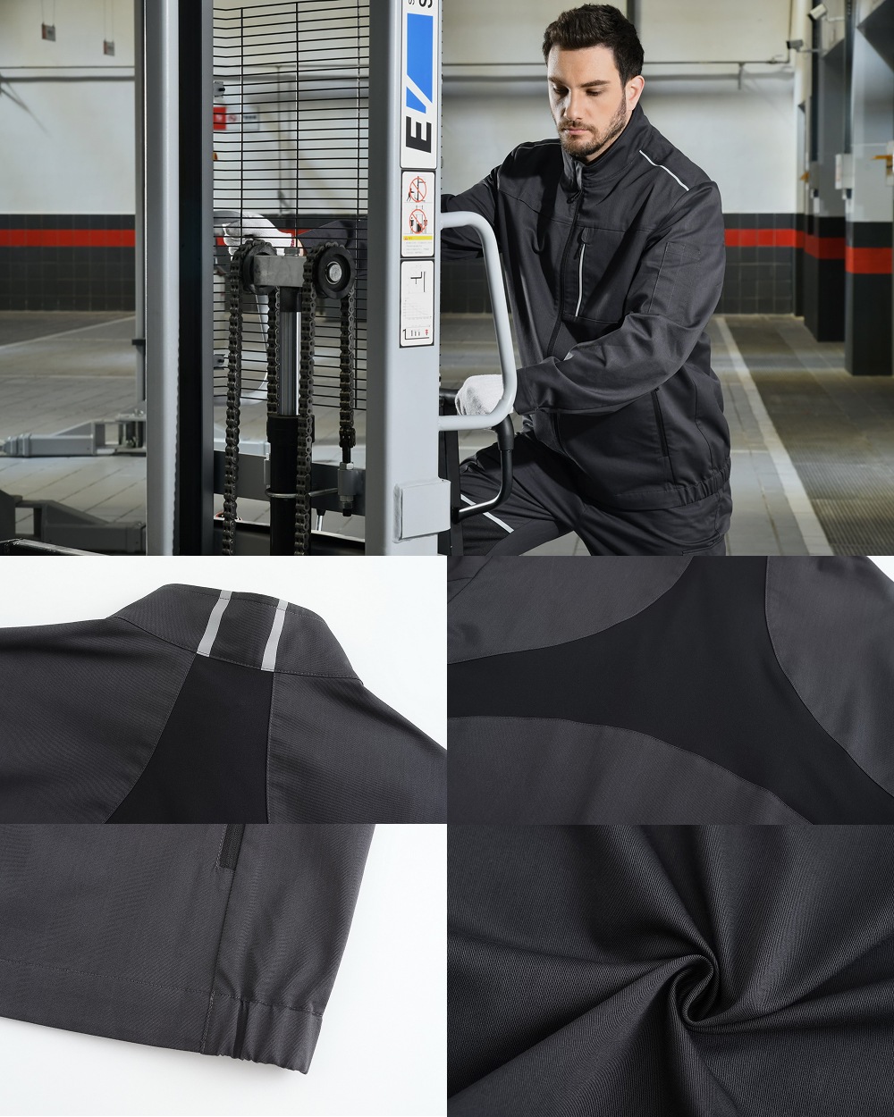 2.3M reflective strips on shoulders,chest and black neck; Elasticated cuffs and hem allow for easy adjustment; Features a chest pocket, two front-side pockets, and a sleeve pocket—designed to meet work needs.