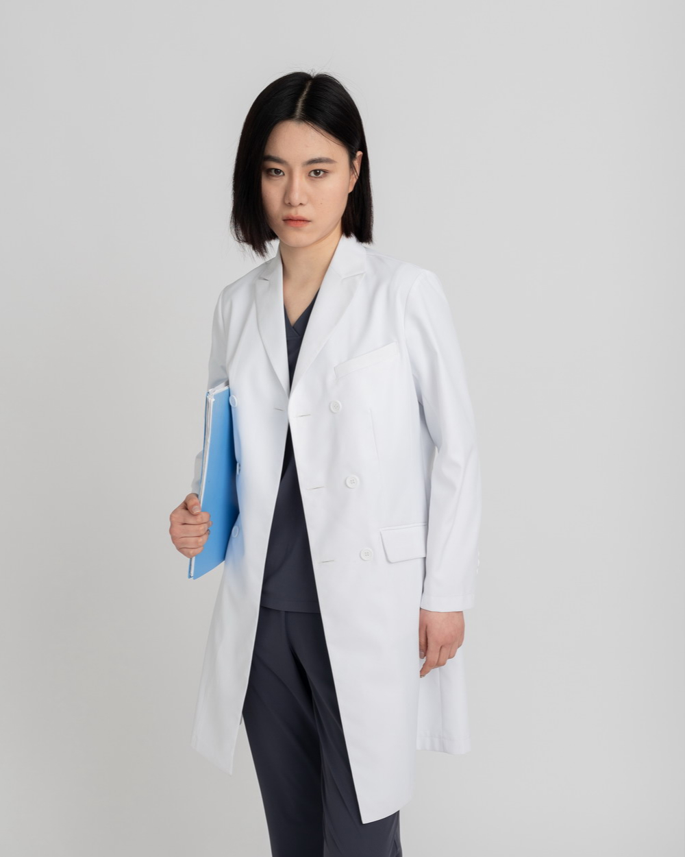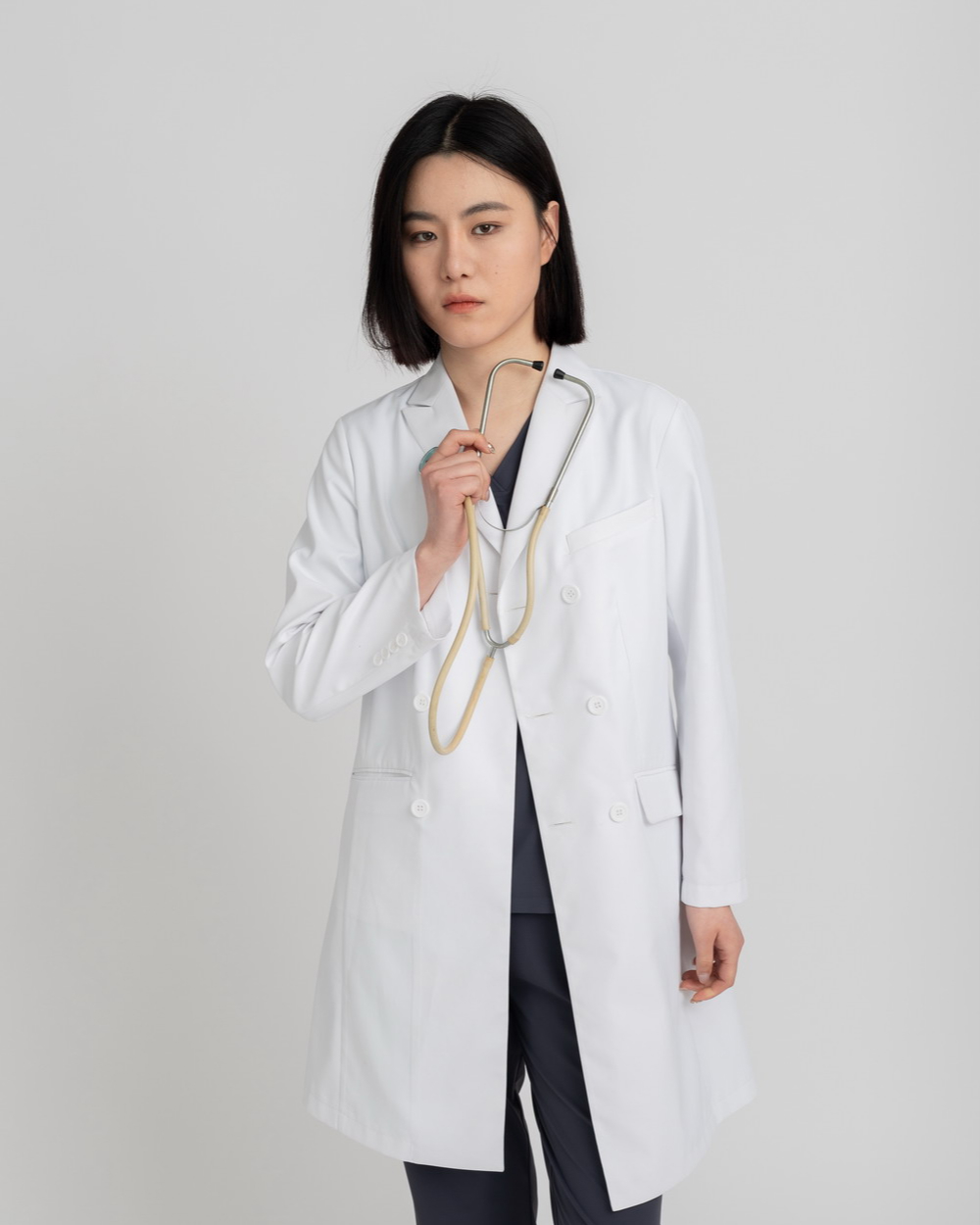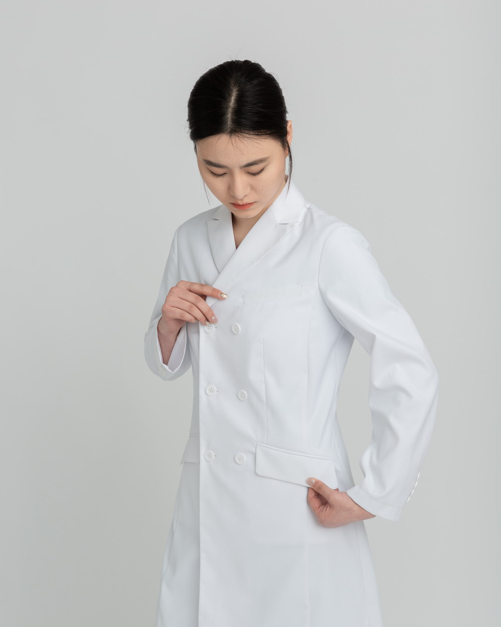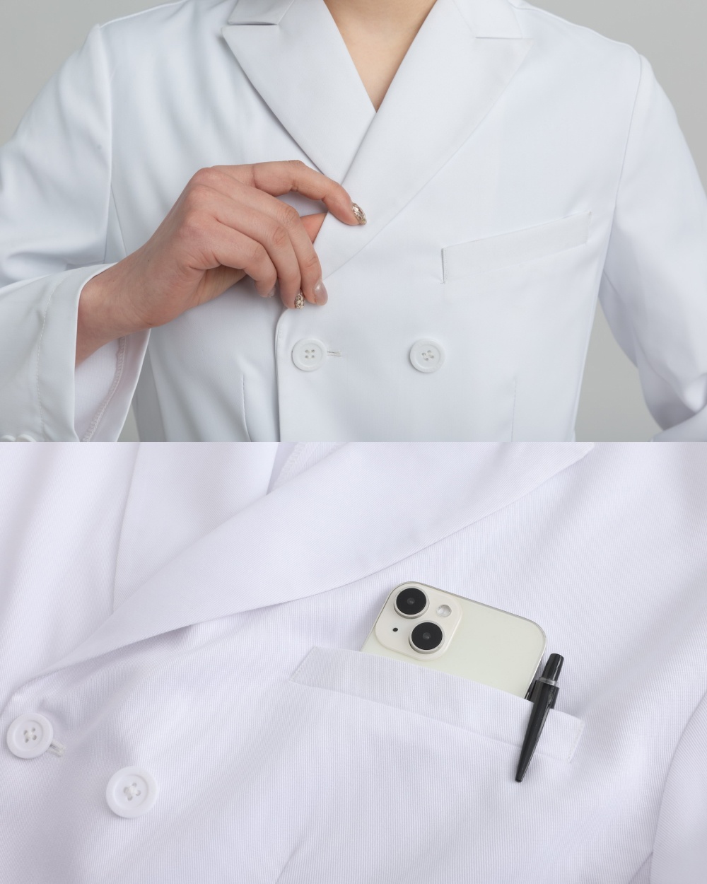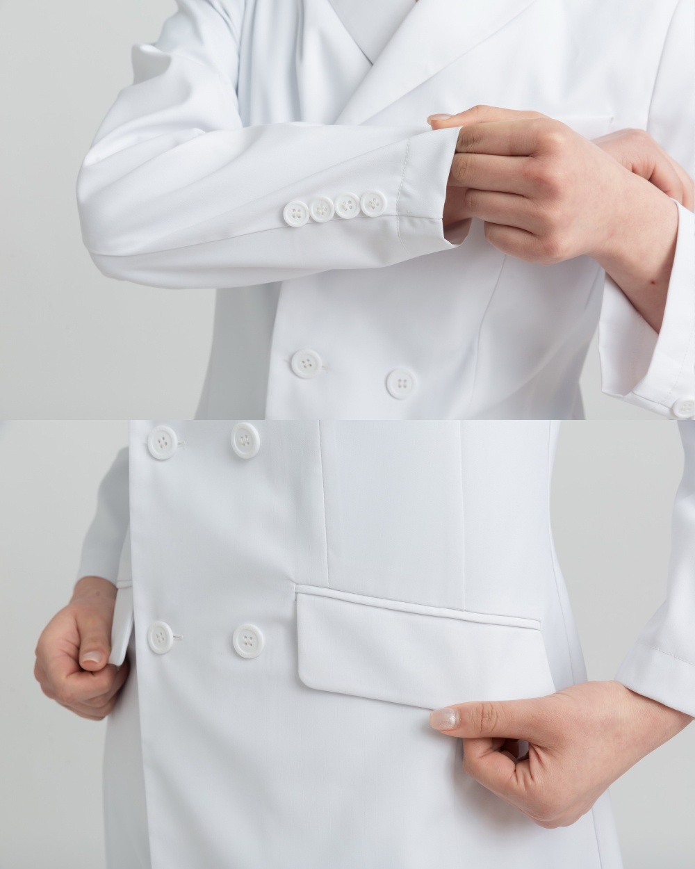 1. Double-breasted lab coat, exploring more possibilities for workwear; suit-inspired, understated, classic, and practical.