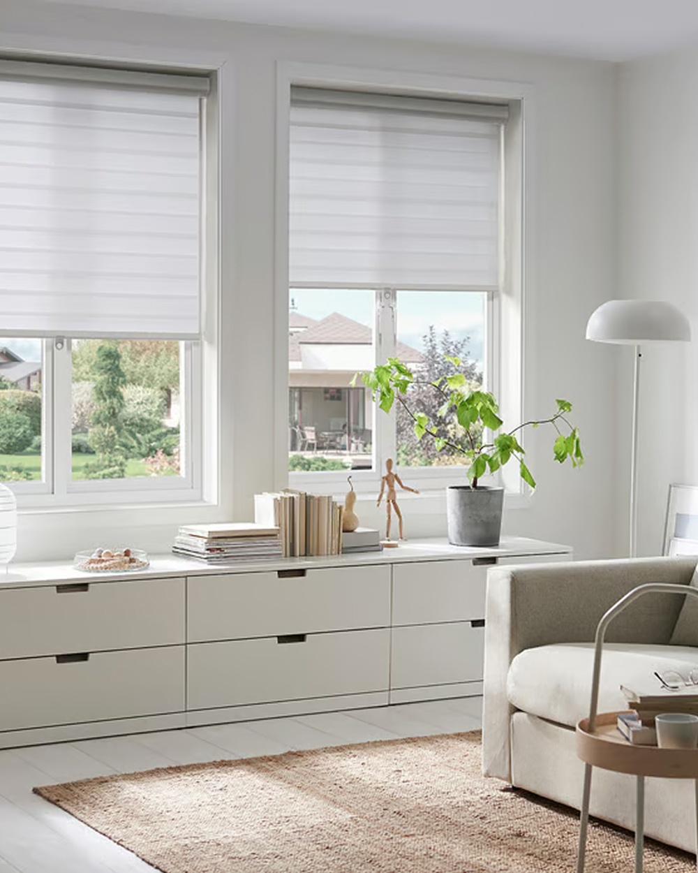This double roller blind is easy to pull down and push up. You can also adjust both the light and transparency level from sheer to private in a flash.