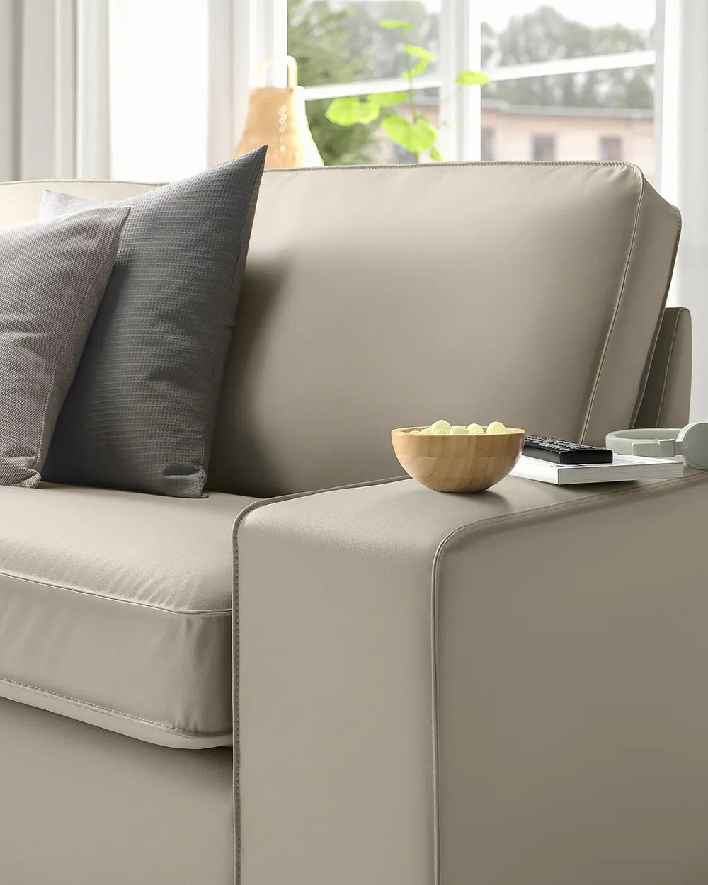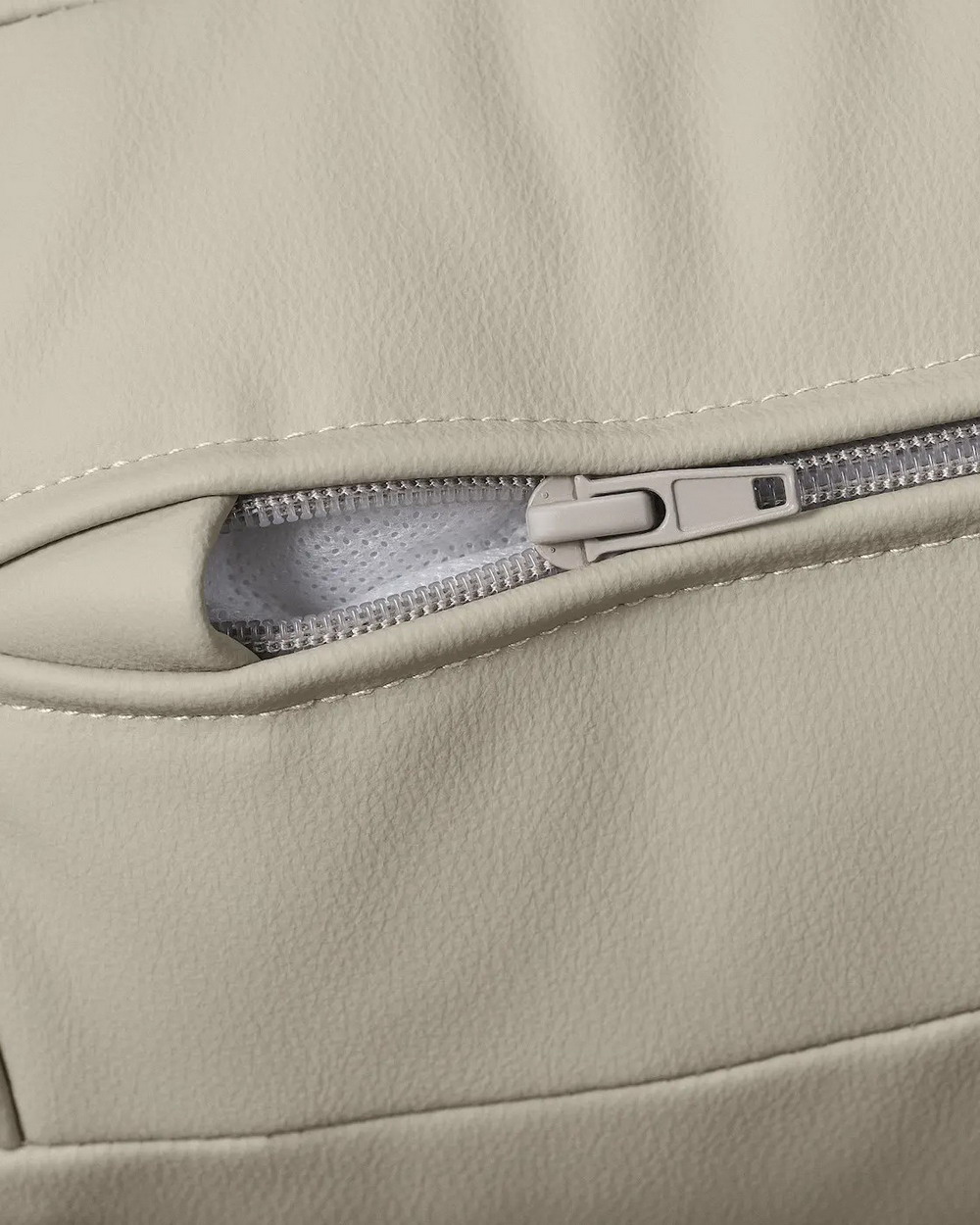 The removable cover is made of a soft, smooth and PU-coated fabric that looks like leather.