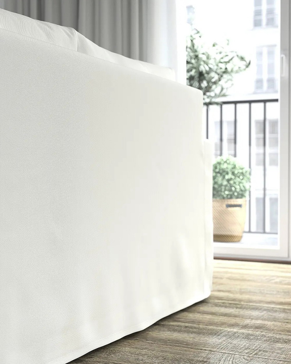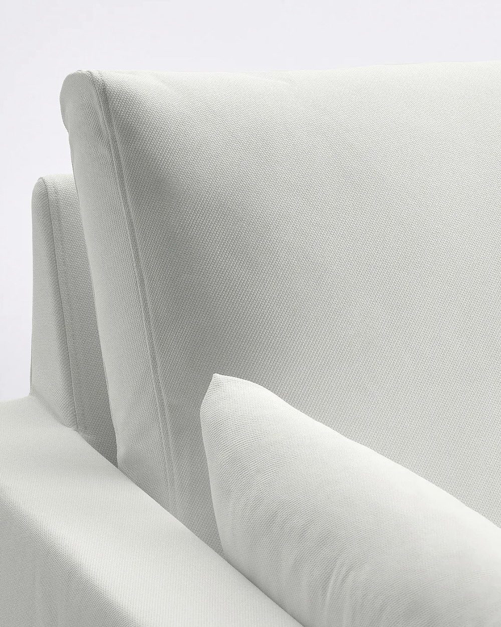 This cover is made from a white fabric in cotton and polyester. It is soft, comfortable and durable – and woven with a texture. Suitable for various home styles.