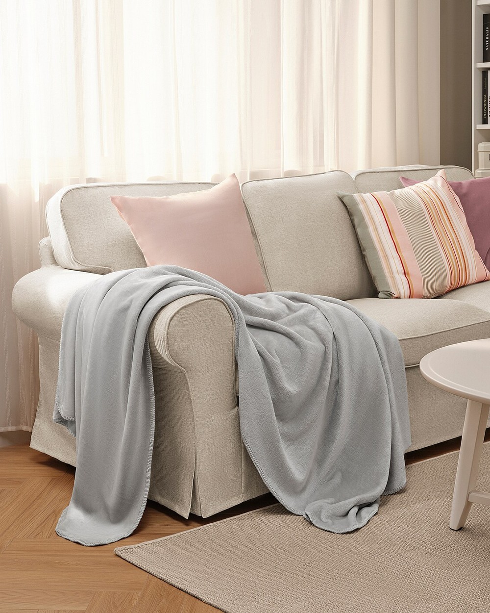 This thick lounge blanket comes with fleece on both sides, which is soft and skin-friendly and provides outstanding warmth. Made of 100% recycled polyester, it feels warm when draped over your body and can be worn with different styles of sofas and couch decor.